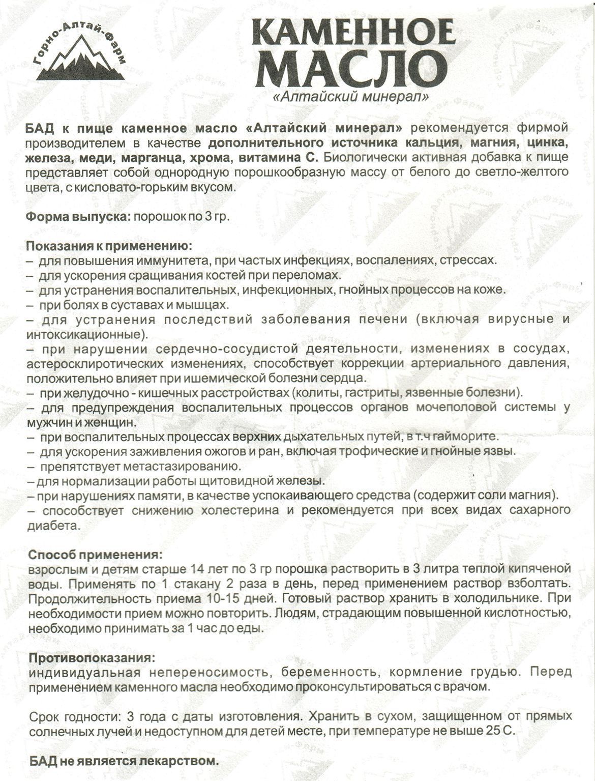 Инструкция по применению каменного масла